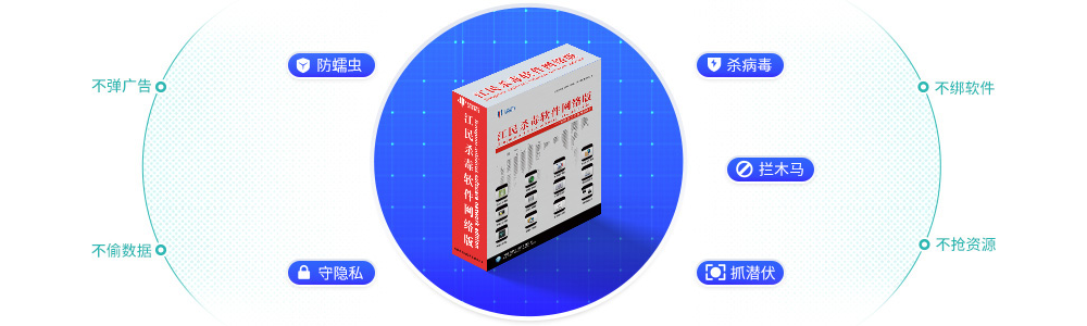 江民网络版杀毒具有防毒、杀毒、防黑、系统加固等三十余项安全防护功能,采用了启发式扫描、虚拟机脱壳、内核级自防御、多行为智能主动防御、ARP欺骗攻击防护、互联网安检通道、系统检测安全分级、反病毒Rootkit/HOOK技术、 “云安全”防毒系统等十余项新技术,将已知、未知病毒一网打尽!